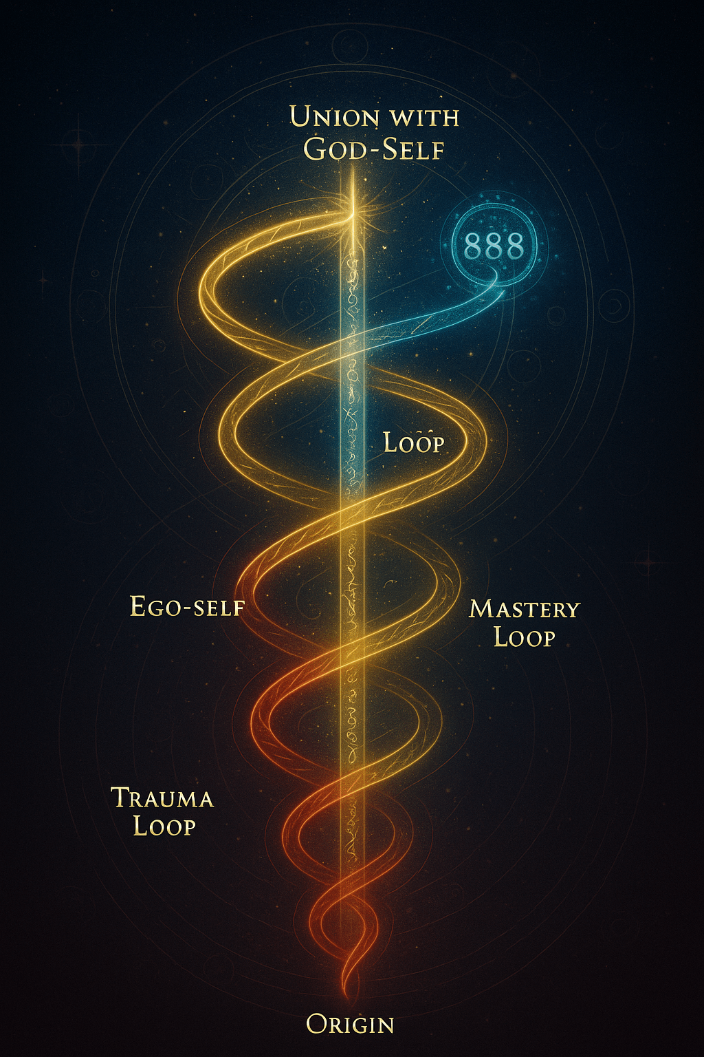 Initiation – the original spark or wound begins the pattern. Projection – external experiences mirror the inner imbalance. Recognition – awareness dawns (“Why does this keep happening?”). Confrontation – the loop resists; tests intensify. Resolution – conscious choice breaks repetition and the timeline ascends to a new spiral.